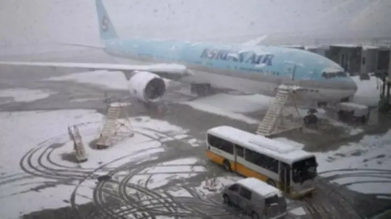 أعلن مطار جيجو الدولي في كوريا الجنوبية اليوم عن إلغاء 163 رحلة جوية، وذلك نتيجة استمرار عاصفة ثلجية شديدة تجتاح المناطق الجنوبية من البلاد. وأفادت الشركة المشغلة للمطار بأن هذه العاصفة أدت إلى تعطيل كبير في حركة الطيران، حيث تم إلغاء ما يقرب من 35% من إجمالي الرحلات المقررة.