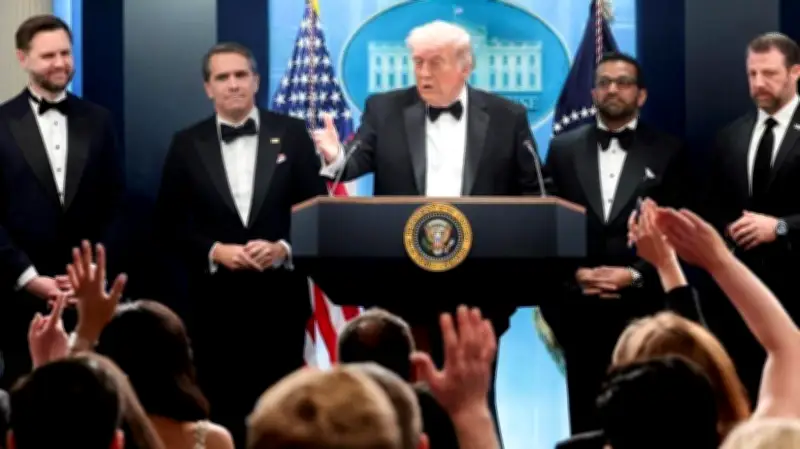 وقال ترامب، الذي تم نقله على الفور من المنصة إلى مكان آمن، للصحفيين في مؤتمر صحفي عقب إطلاق النار يوم السبت: "لا أتصور وجود مهنة أكثر خطورة من هذه". وقال البيت الأبيض في بيان يوم الأحد، إن ترامب "يقف بشجاعة" بعد نجاته، إلى جانب أعضاء حكومته، من "محاولة اغتيال أثناء إطلاق النار". وأشاد ترامب بجهاز الخدمة السرية، قائلاً إن جميع الحاضرين مدينون لهم بـ"امتنان عظيم". ورغم انتقاده لوسائل الإعلام خلال فترتي رئاسته، اغتنم ترامب الفرصة ليشكر الصحافة على "تغطيتها المسؤولة" للهجوم. كما دعا الجميع إلى "حل خلافاتنا سلمياً". واستغل ترامب الحادثة لتعزيز رغبته في بناء قاعة احتفالات جديدة في البيت الأبيض، فكتب على موقع "تروث سوشيال" أن ذلك ما كان ليحدث "مع وجود قاعة الاحتفالات العسكرية السرية للغاية قيد الإنشاء حالياً". وقد واجه هذا المشروع المثير للجدل عدداً من الطعون القانونية.