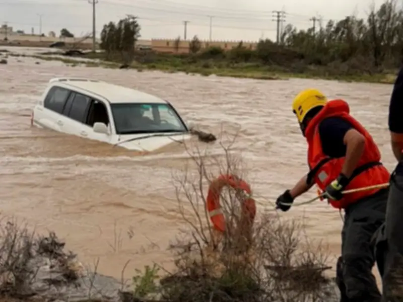 - تم إنقاذ شخصين احتجزا داخل مركبة في سيل جارف بمنطقة القصيم.