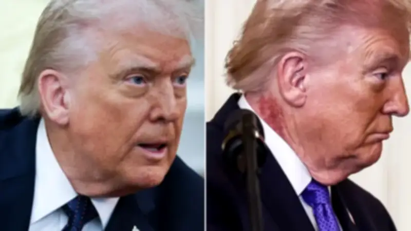 أثار ظهور طفح جلدي واضح في رقبة الرئيس الأمريكي دونالد ترامب تساؤلات صحية جديدة، وذلك بعد أشهر من ظهور كدمات متكررة على يده وتورم في ساقيه. التقطت الصور الرسمية من حفل منح وسام الشرف في البيت الأبيض يوم الاثنين طفحاً جلدياً أحمر كبيراً مع قشور واضحة على الجانب الأيمن من رقبة الرئيس البالغ من العمر 79 عاماً.