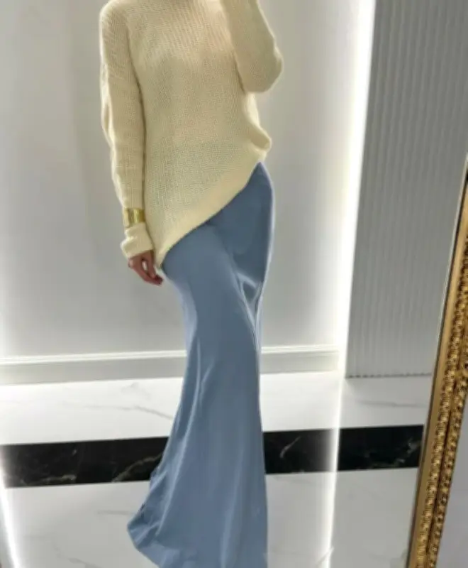 لم تعد التصاميم والقصات كما كانت في الماضي، حيث يمنح التصميم المستقيم والمتناسق لهذه التنورة حضورًا عمليًا وأنيقًا في نفس الوقت. كما تضيف الفتحات الأمامية أو الجانبية حركة خفيفة ومرنة ولمسة أنثوية مدروسة بعناية، مما يساهم في كسر رتابة الطول الزائد للتنورة ويجعلها أكثر جاذبية.