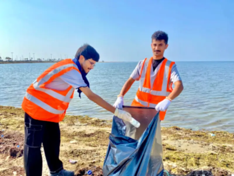 مكتب البيئة بالليث ينفذ مبادرة لتنظيف الشاطئ بالشراكة مع الكلية التقنية