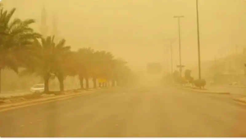 - انخفاض في مدى الرؤية الأفقية بسبب العواصف الرملية.