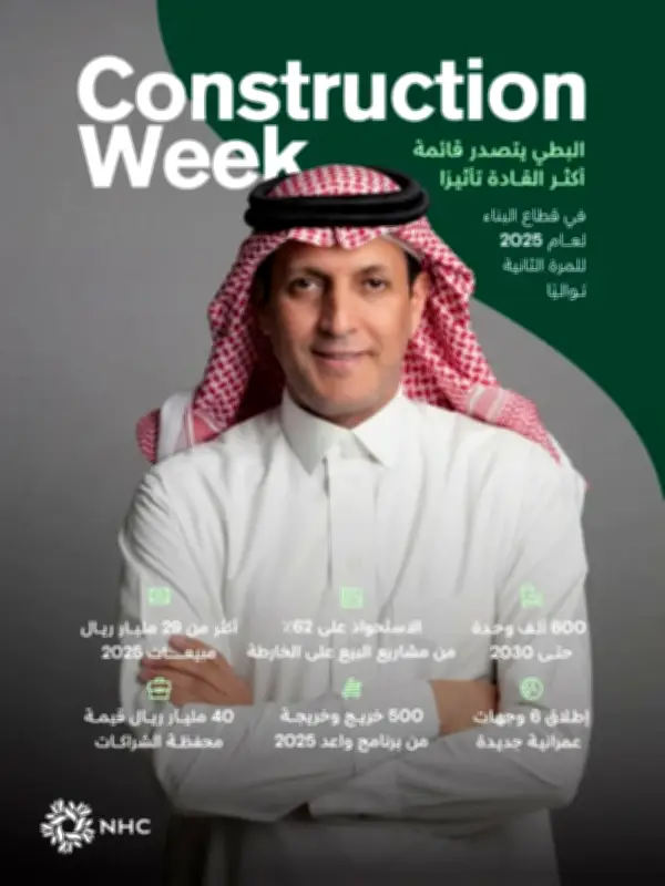 تصدر محمد البطي، الرئيس التنفيذي لشركة NHC، قائمة كونستركشن ويك لأكثر 30 قائداً مؤثراً في إعادة تعريف مشهد البناء في المملكة العربية السعودية لعام 2025، محققاً المركز الأول للسنة الثانية على التوالي. هذا التكريم يأتي تقديراً لدوره الريادي في قيادة التحول النوعي في قطاع الإسكان والتطوير العقاري بالمملكة، مما يعكس جهوده المستمرة في دفع عجلة التنمية.