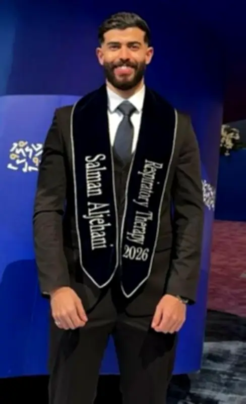 حقق الشاب سلمان بن تركي الجهني إنجازاً مهنياً بارزاً بحصوله على لقب أخصائي علاج تنفسي، وذلك بعد تخرجه بنجاح من إحدى الكليات الطبية الخاصة في مدينة جدة.