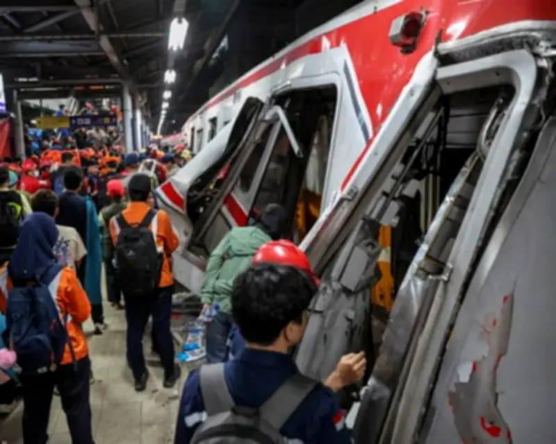 وقع التصادم عندما اصطدم قطار ركاب طويل المسافة بقطار ركاب آخر كان متوقفًا على نفس المسار في منطقة بيكاسي، على بعد حوالي 25 كيلومترًا من جاكرتا. وأظهرت لقطات مصورة نقل الجرحى على عربات طبية بالقرب من محطة بيكاسي تيمور، بينما حاول رجال الإنقاذ تحرير عالقين من حطام القطار.