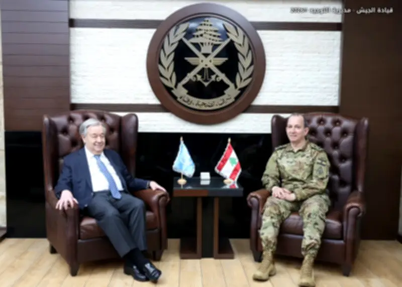 سبق المؤتمر الصحفي زيارة غوتيريش لقائد الجيش اللبناني العماد رودولف هيكل في مكتبه باليرزة، حيث ناقشا الأوضاع العامة والتطورات الأخيرة في لبنان والمنطقة. وتم التشديد خلال اللقاء على:
