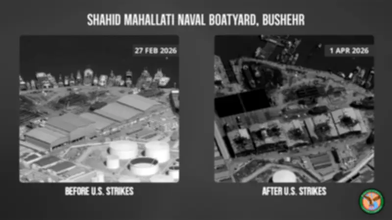 نشرت القيادة المركزية الأميركية (سنتكوم) صوراً ملتقطة عبر الأقمار الصناعية تظهر دماراً واسعاً في حوض بناء السفن البحري "شهيد محلاتي" بمدينة بوشهر الإيرانية. وتكشف الصور، التي قارنت بين حال المنشأة في 27 فبراير (شباط) و1 أبريل (نيسان) 2026، عن احتراق كامل للمباني وتدمير مرافق الصيانة والتصنيع.